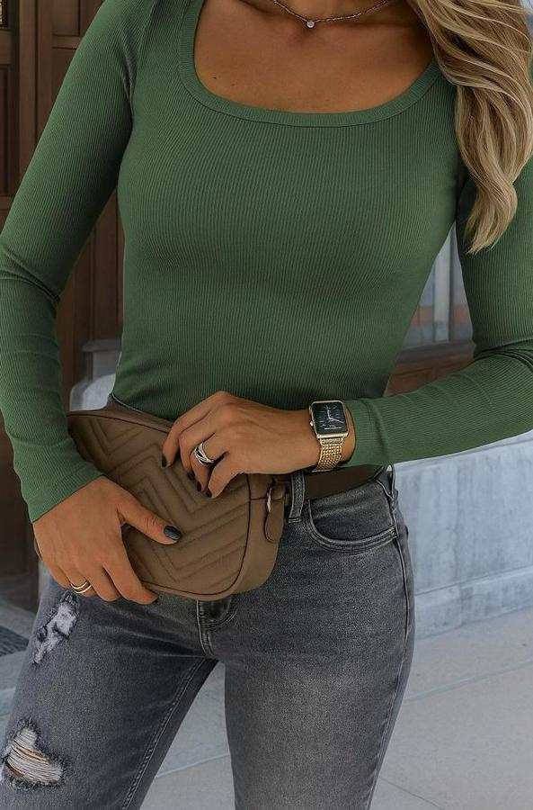 Kadın Uzun Kollu Derin Yuvarlak Yaka Kaşkorse Bluz
