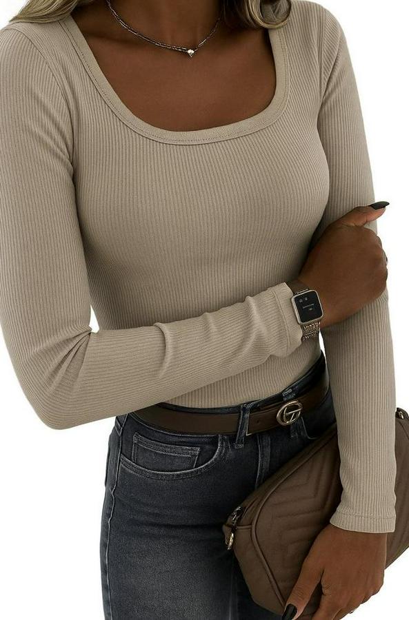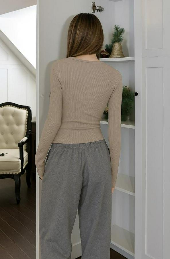 Uzun Kollu Derin Yuvarlak Yaka Kaşkorse Bluz
