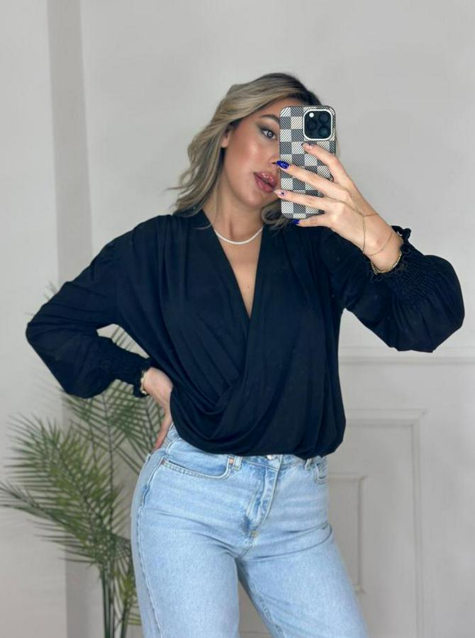 AnasayfaTüm ÜrünlerÜst GiyimBluz & TunikBluzUzun Kollu Dökümlü Kruvaze Yaka Kol Ucu Gipeli Sandy Bluz