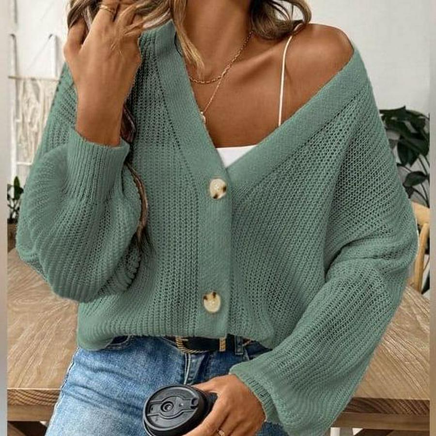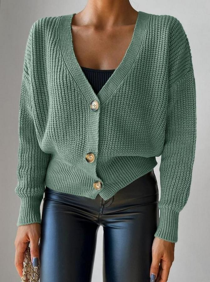 Uzun Kollu Düğme Detay Triko Bluz