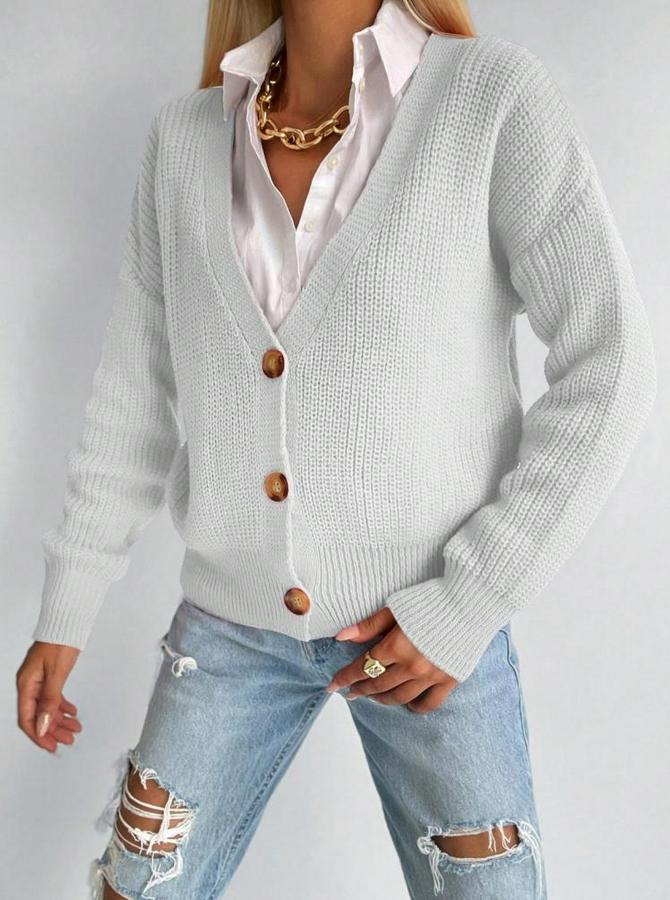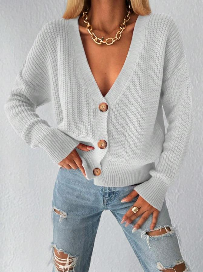 AnasayfaTüm ÜrünlerÜst GiyimBluz & TunikBluzUzun Kollu Düğme Detay Triko Bluz