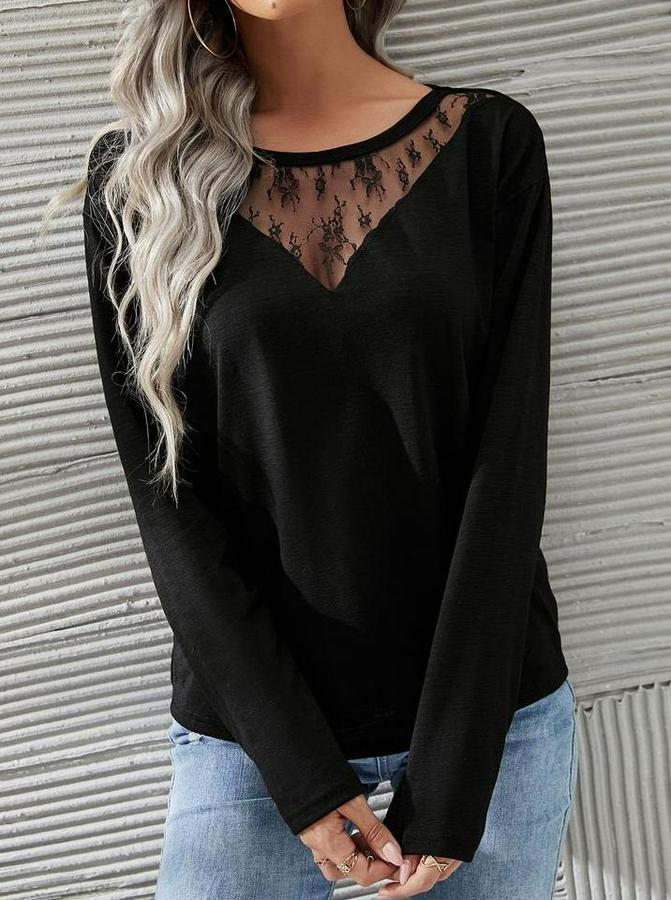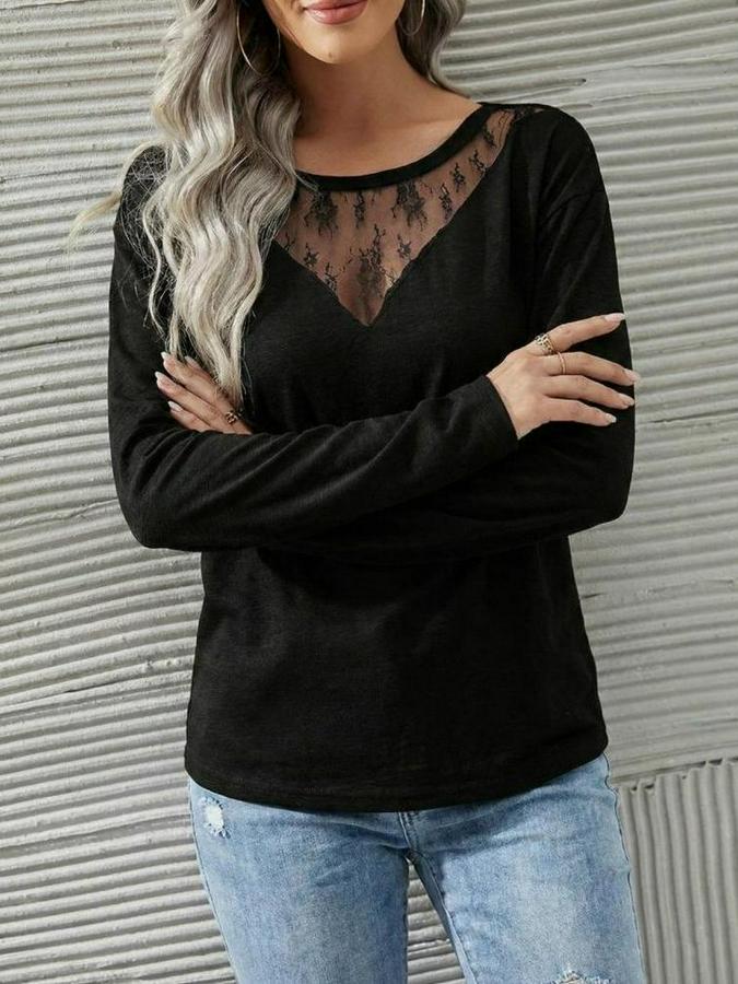 AnasayfaTüm ÜrünlerÜst GiyimBluz & TunikBluzUzun Kollu Geniş Yuvarlak Yaka Dantelli Viskon Iki Iplik Bluz