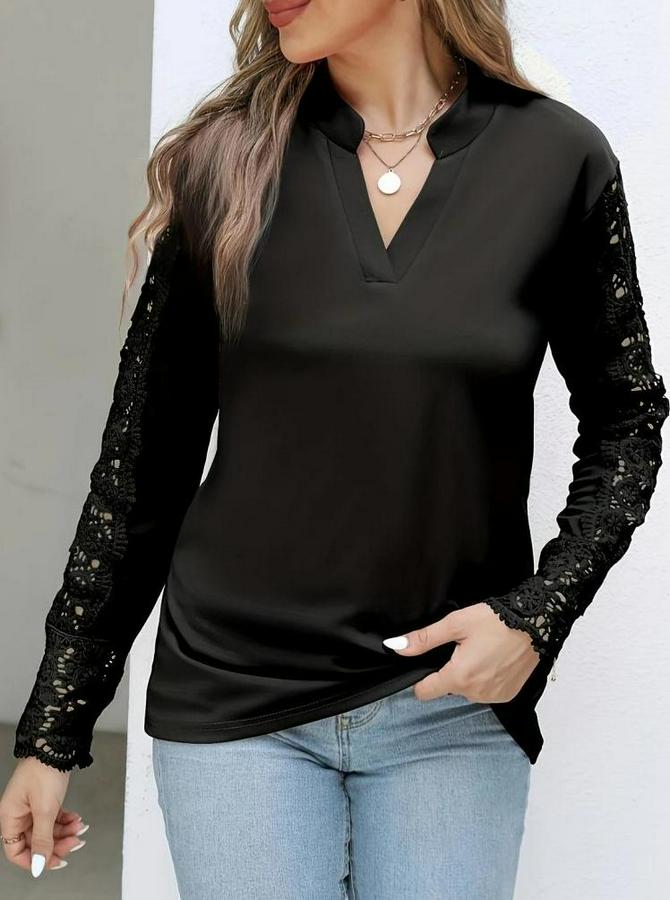 AnasayfaTüm ÜrünlerÜst GiyimBluz & TunikBluzUzun Kollu Hakim Yaka Kolları Dantel Detaylı Ithal Krep Bluz
