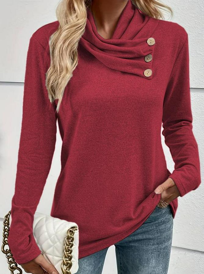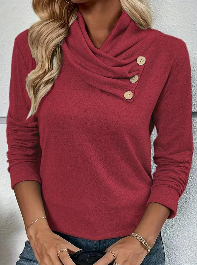 Kadın Uzun Kollu Kapişon Yaka Düğmeli Yumoş Bluz