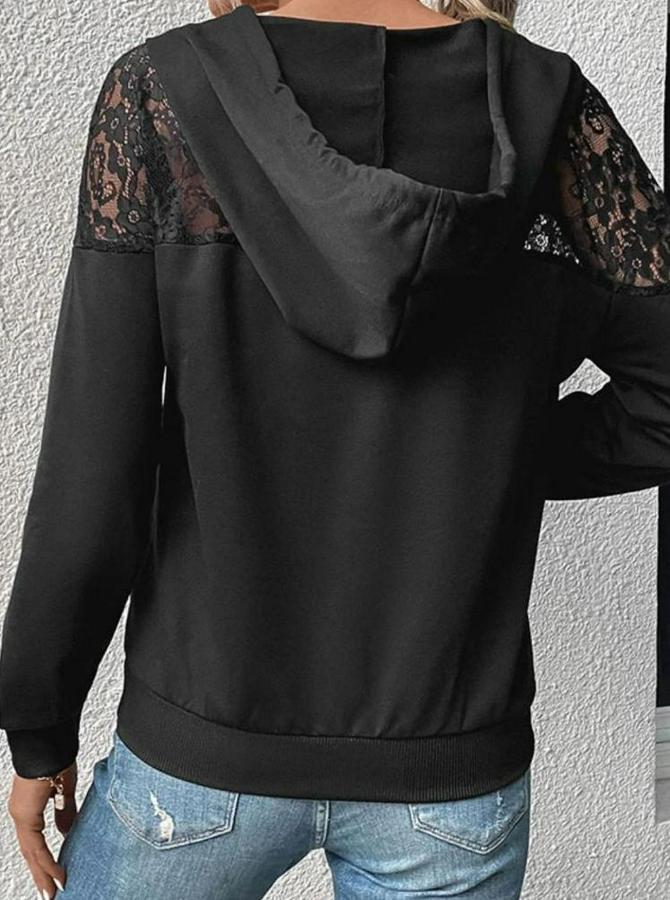 Kadın Uzun Kollu Kapşonlu Bağcıklı Dantelli Viskon Iki Iplik Bluz