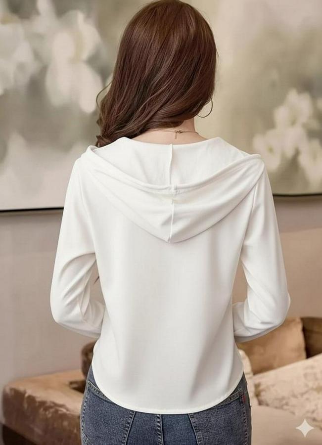 Uzun Kollu Kapşonlu Bağcıklı Düğmeli Viskon Iki Iplik Bluz