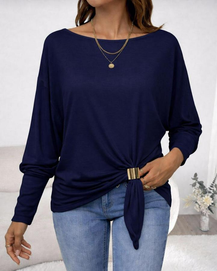 Kadın Uzun Kollu Kayık Yaka Manşet Ve Toka Detay Bluz