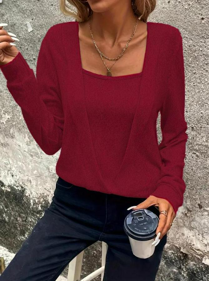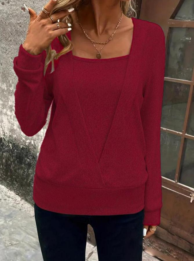 Kadın Uzun Kollu Kruvaze Yaka Kol Ve Etek Ucu Manşet Detay Yumoş Bluz
