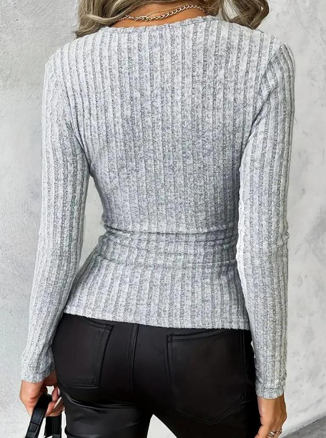 Uzun Kollu Kruvaze Yaka Yandan Düğme Detaylı Şardonlu Kaşkorse Bluz