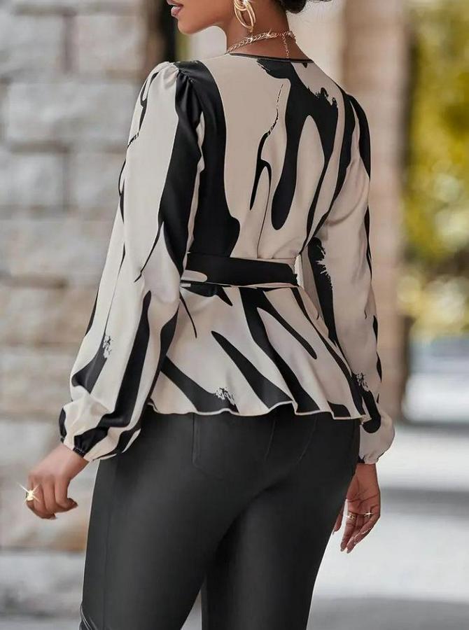 Uzun Kollu Kruvaze Yakalı Yandan Bağlamalı Kısa Beli Kuşaklı Modal Bluz