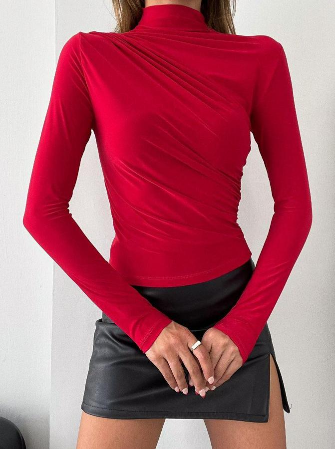 Uzun Kollu Omuz Büzgü Detay Vanezia Kumaş Bluz