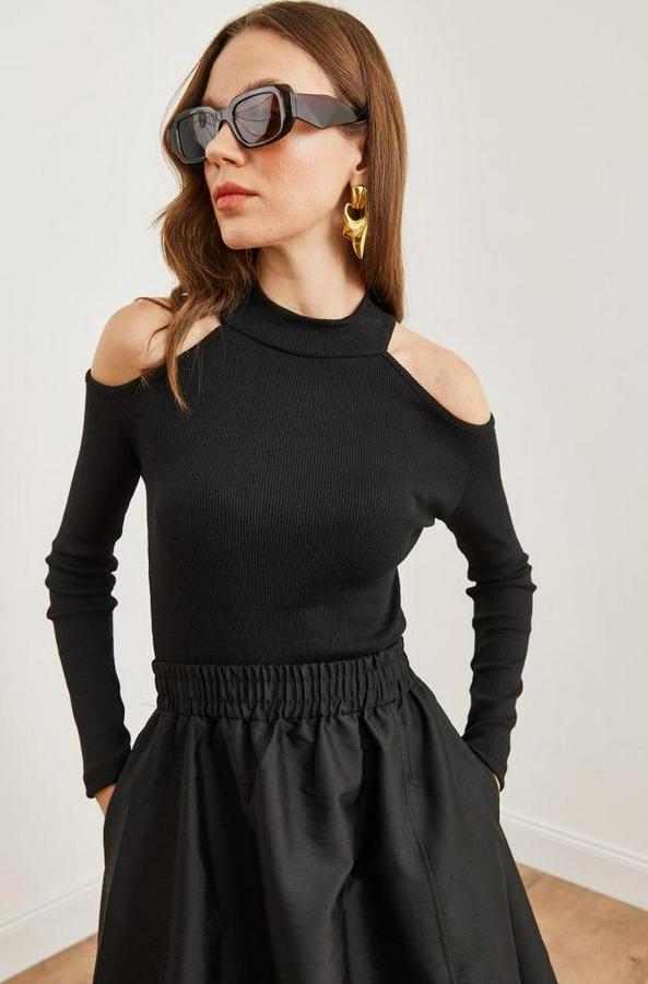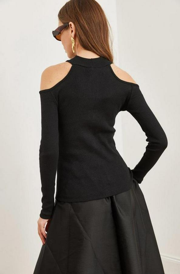 AnasayfaTüm ÜrünlerÜst GiyimBluz & TunikBluzUzun Kollu Omuz Dekolteli Kaşkorse Kumaş Bluz