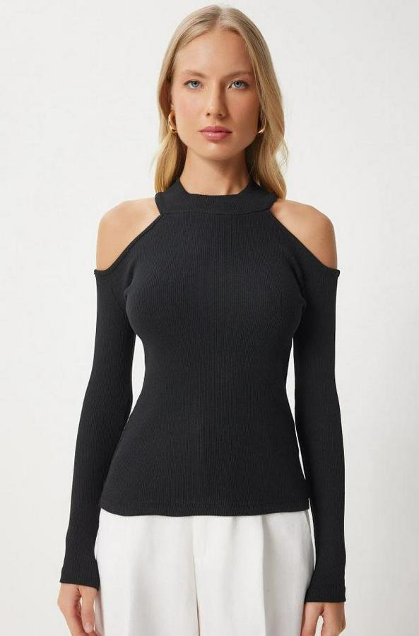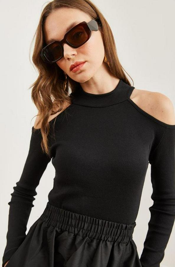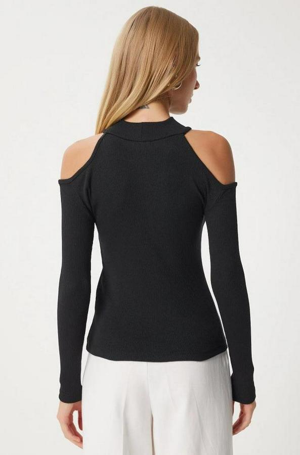 Kadın Uzun Kollu Omuz Dekolteli Kaşkorse Kumaş Bluz