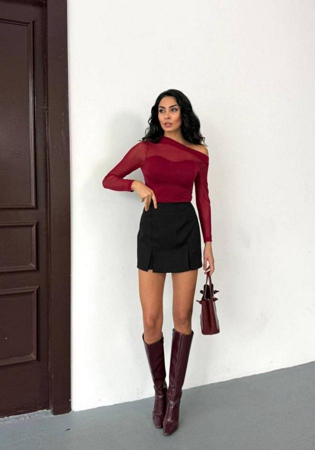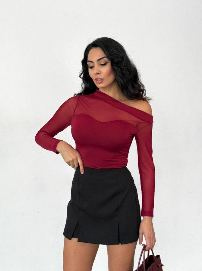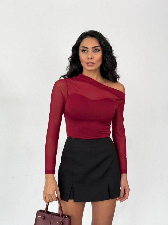 Uzun Kollu Omuz Dekoltesi Ve Transparan Tül Detay Bluz