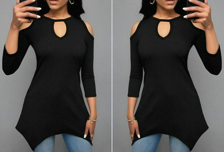 Kadın Uzun Kollu Omuz Ve Göğüs Dekolte Detay Viskon Bluz