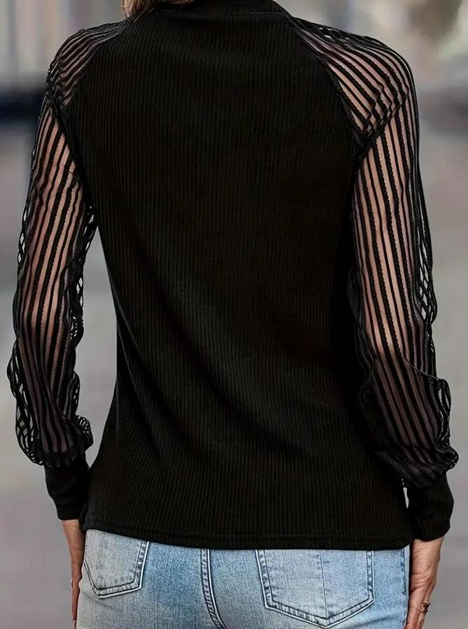 AnasayfaTüm ÜrünlerÜst GiyimBluz & TunikBluzUzun Kollu Tül Detaylı Bisiklet Yakalı Kaşkorse Bluz