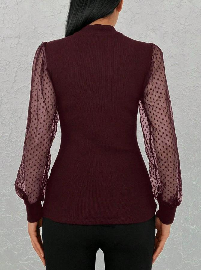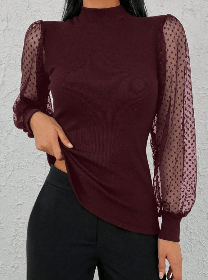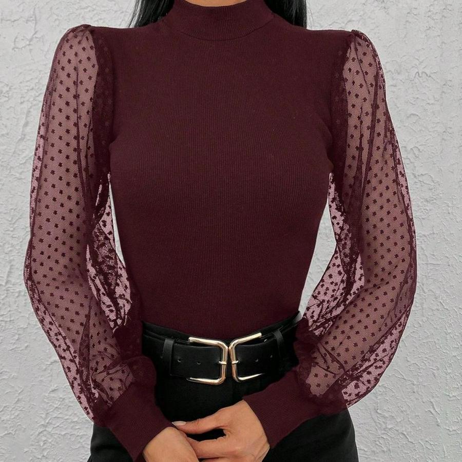 AnasayfaTüm ÜrünlerÜst GiyimBluz & TunikBluzUzun Kollu Tül Detaylı Yarım Balıkçı Yaka Kaşkorse Bluz