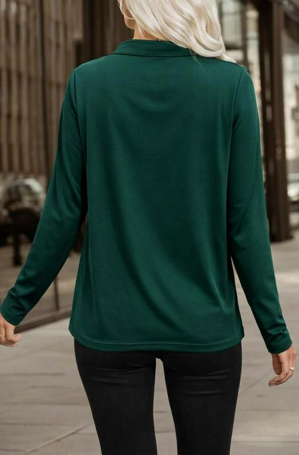 Kadın Uzun Kollu V Hakim Yaka Fermuar Detaylı Viskon Bluz