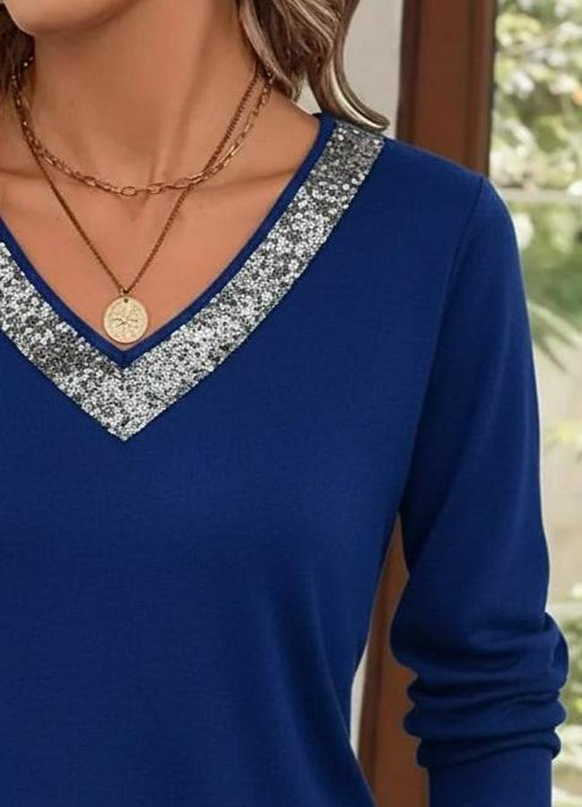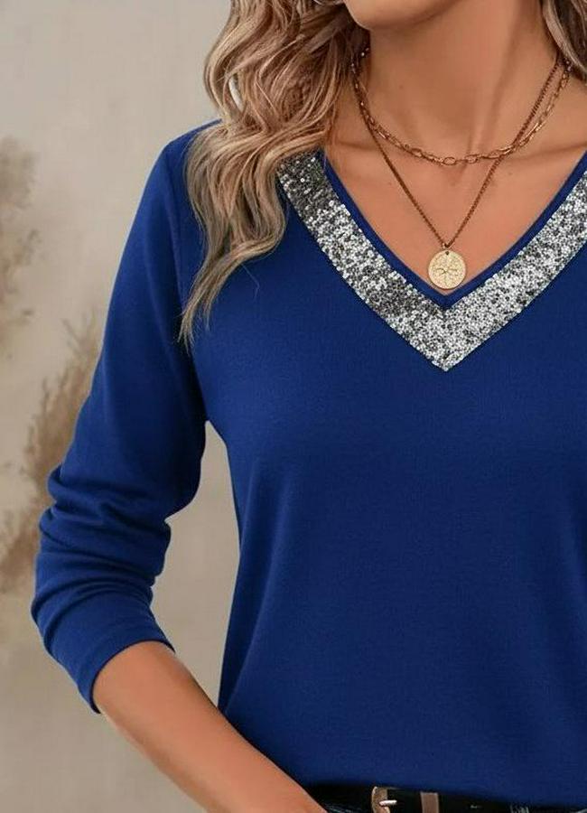 Uzun Kollu V Payet Yakalı Viskon Bluz