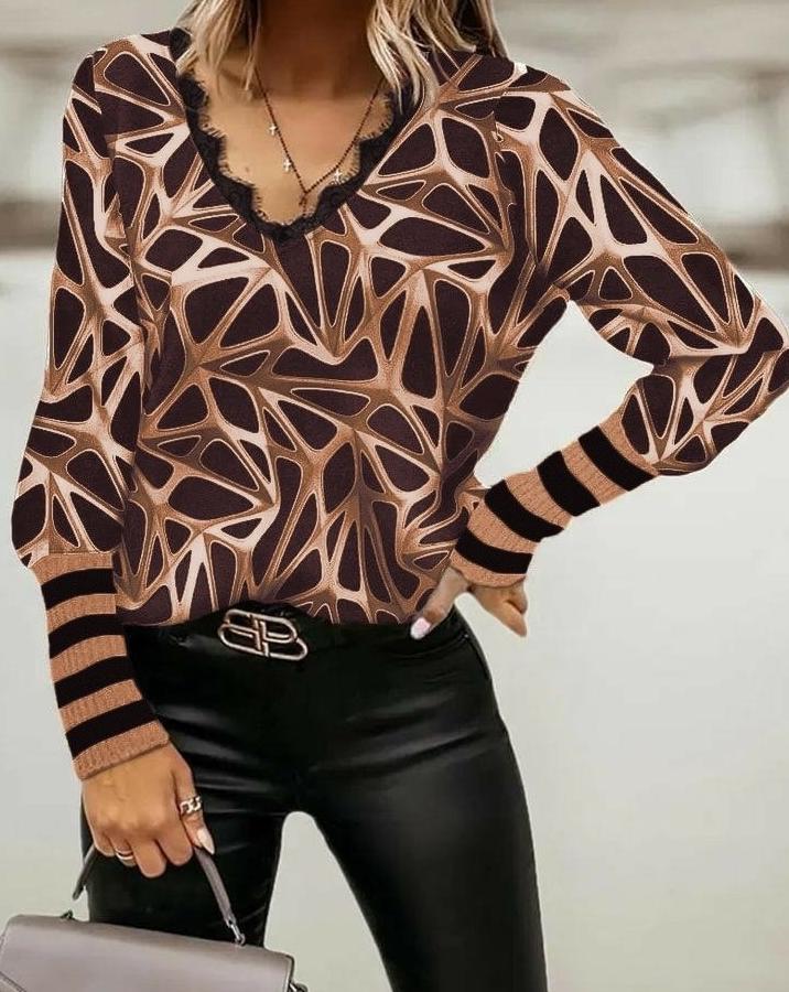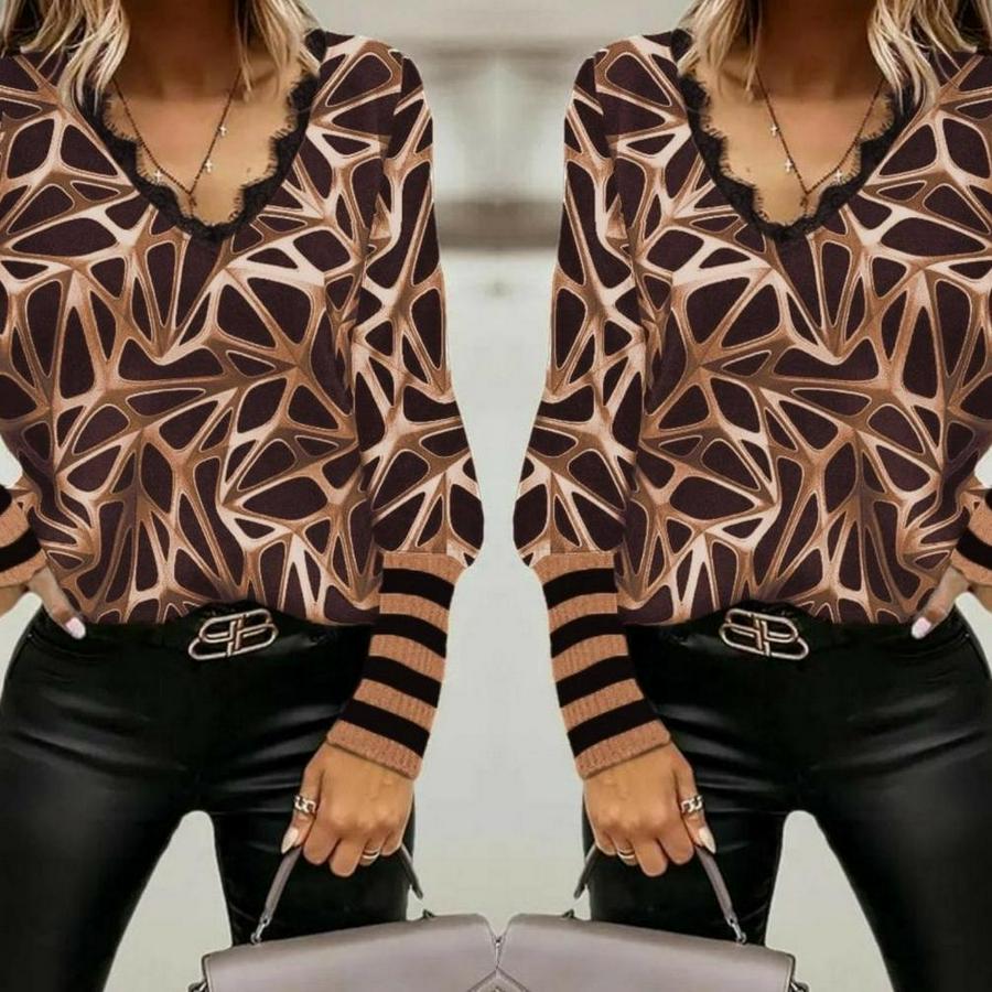 AnasayfaTüm ÜrünlerÜst GiyimBluz & TunikBluzUzun Kollu V Yaka Kenarları Güpür Detay Şardonlu Dalgıç Bluz