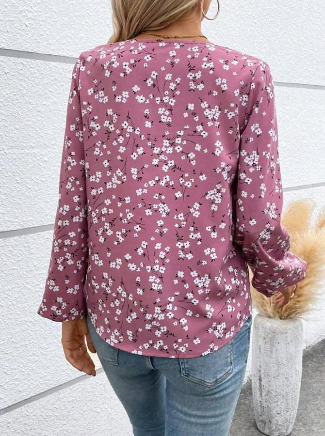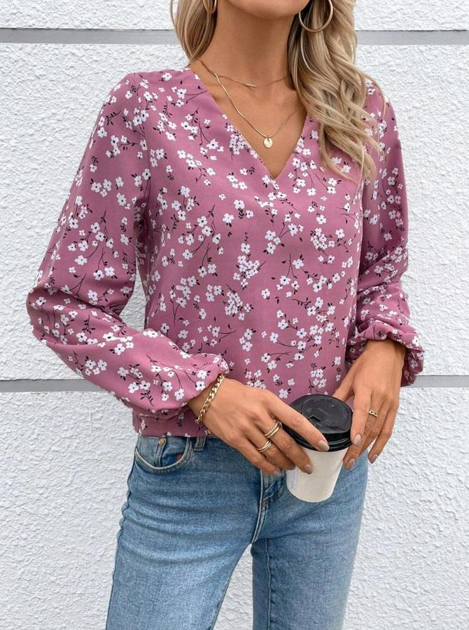 Uzun Kollu V Yakalı Çiçek Desenli Modal Bluz