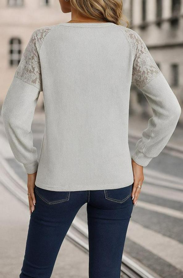 Kadın Uzun Kollu V Yakalı Dantelli Waffle Bluz