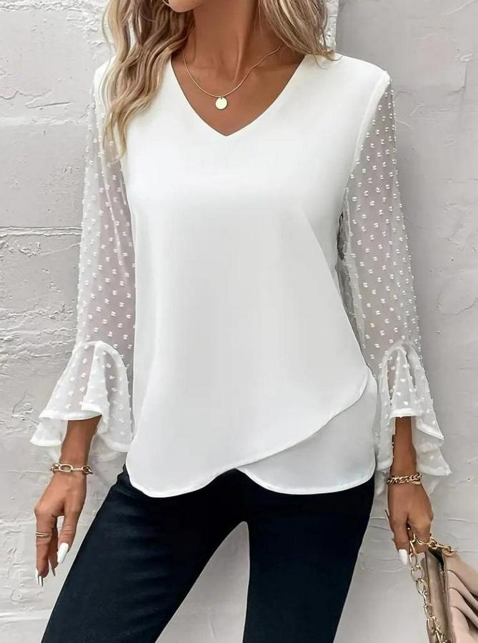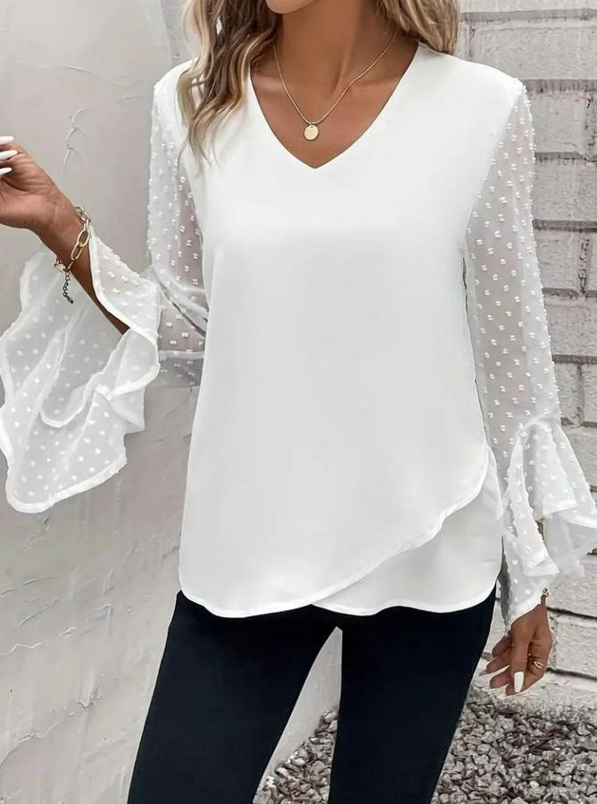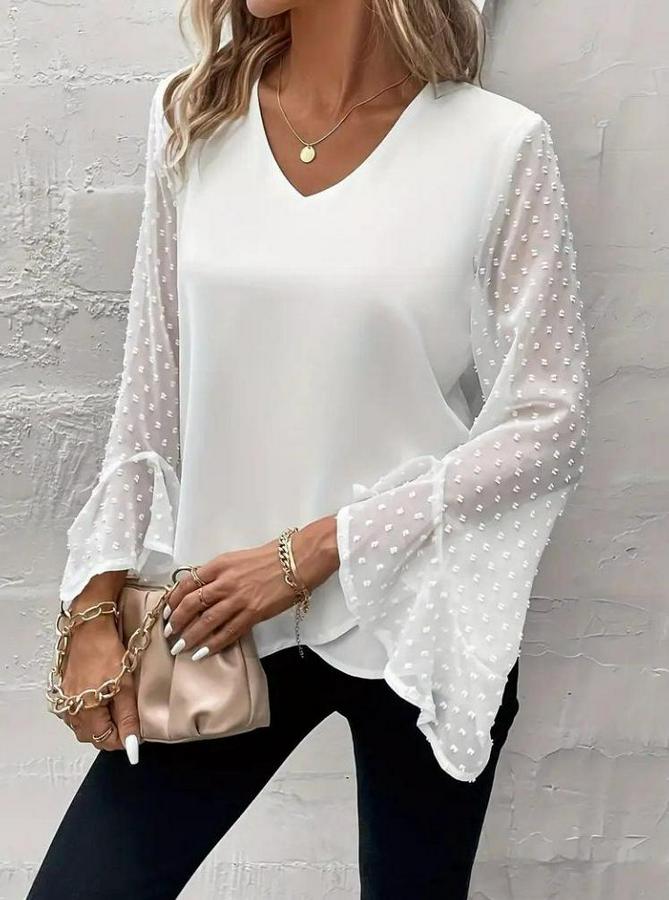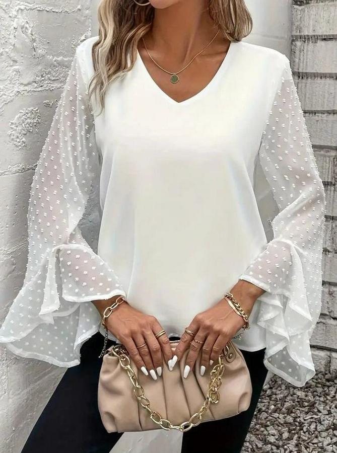 AnasayfaTüm ÜrünlerÜst GiyimBluz & TunikBluzUzun Kollu V Yakalı Kolları Ispanyol Detayı Sandy Bluz