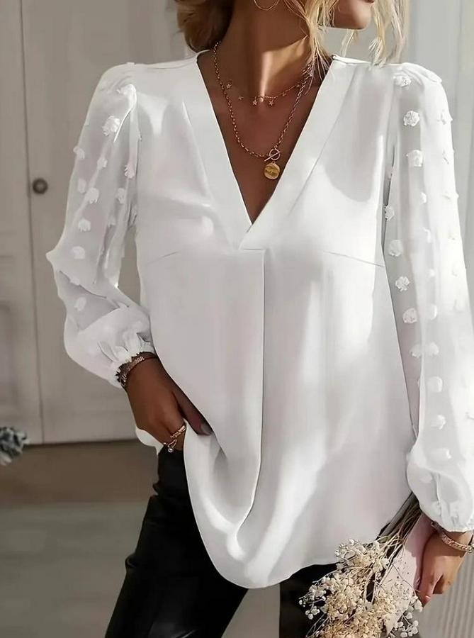 AnasayfaTüm ÜrünlerÜst GiyimBluz & TunikBluzUzun Kollu V Yakalı Kolları Popon Detaylı Sandy Bluz