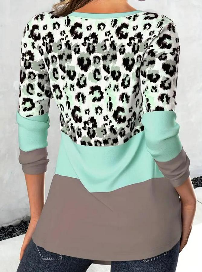 Uzun Kollu V Yakalı Leopar Baskılı Şardonlu Dalgıç Bluz