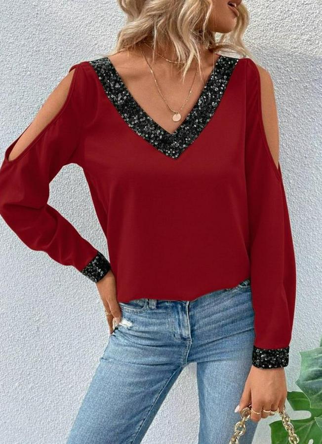 AnasayfaTüm ÜrünlerÜst GiyimBluz & TunikBluzUzun Kollu V Yakalı Omuzlardan Açık Sandy Bluz