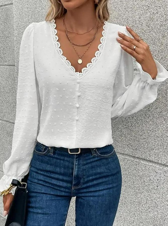 AnasayfaTüm ÜrünlerÜst GiyimBluz & TunikBluzUzun Kollu V Yakalı Önden Düğmeli Bluz