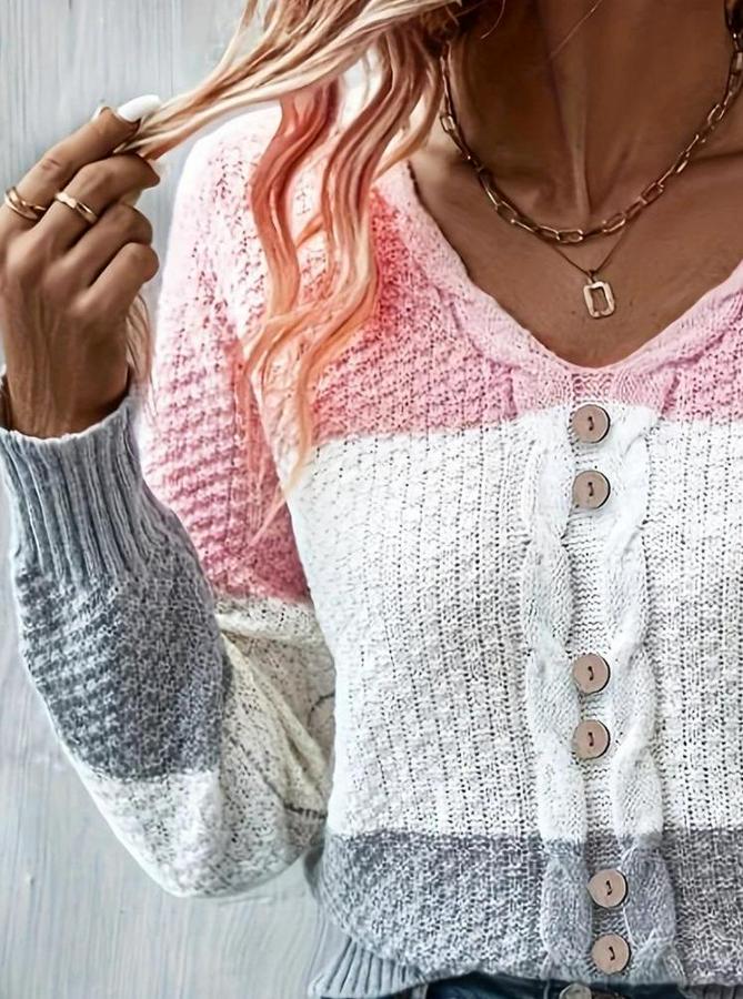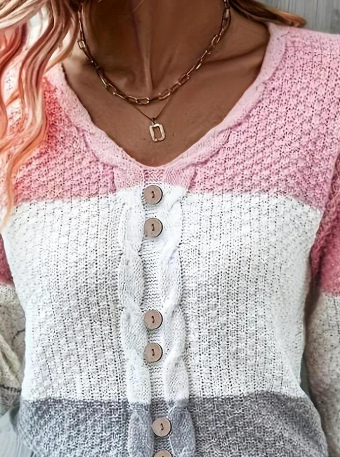 Uzun Kollu V Yakalı Önden Düğmeli Çok Renkli Bluz