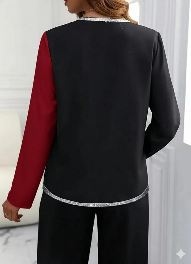 Uzun Kollu V Yakalı Pul Payet Işlemeli Ithal Krep Bluz