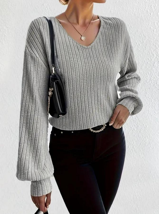 Uzun Kollu V Yakalı Salaş Şardonlu Kaşkorse Bluz