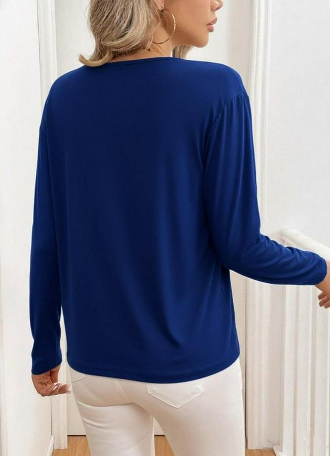 Uzun Kollu V Yakalı Viskon Iki Iplik Bluz
