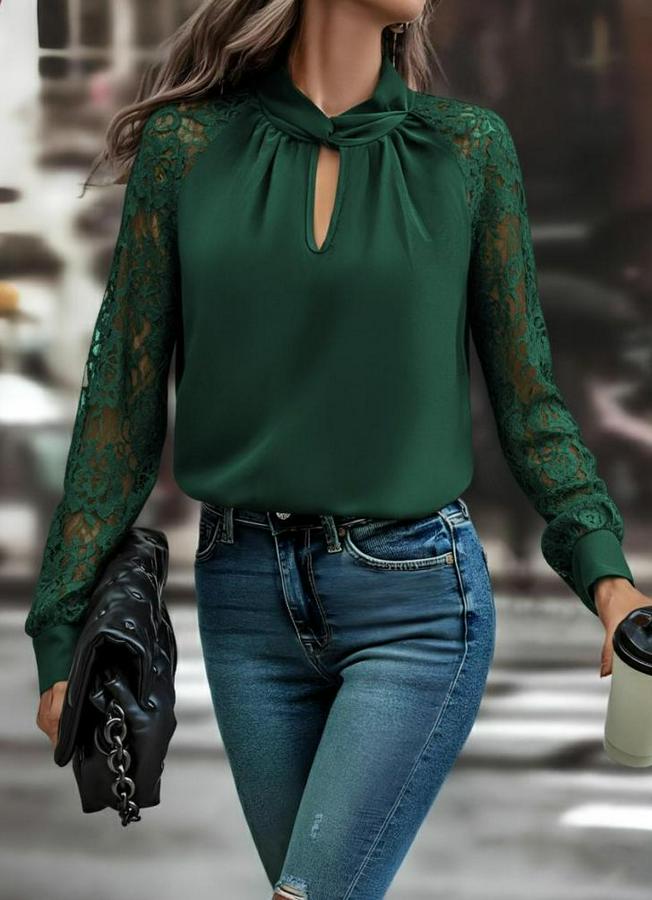 AnasayfaTüm ÜrünlerÜst GiyimBluz & TunikBluzUzun Kollu Yaka Düğme Detay Güpürlü Kol Krep Bluz