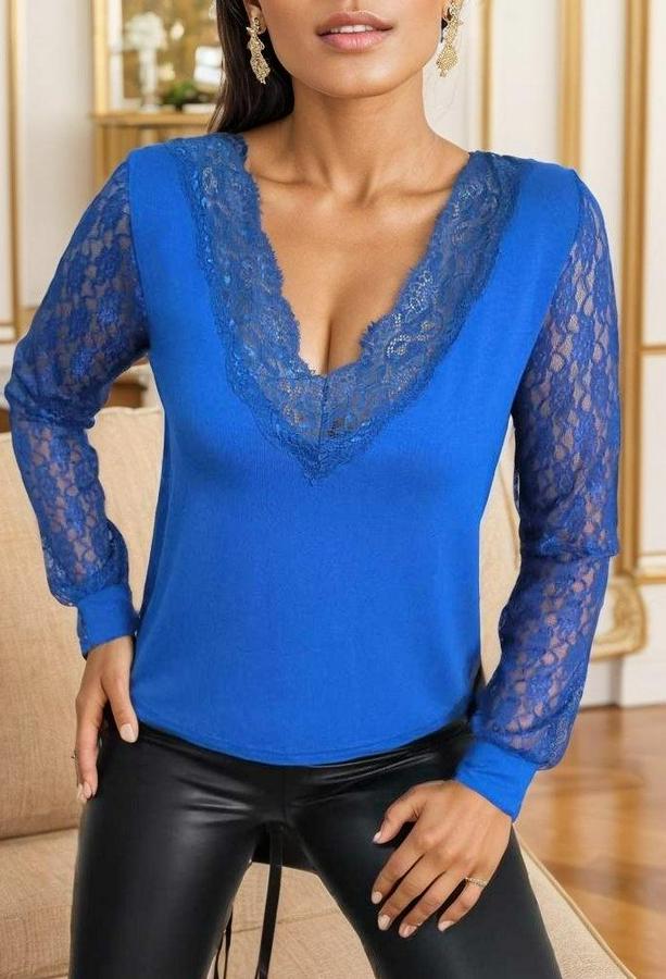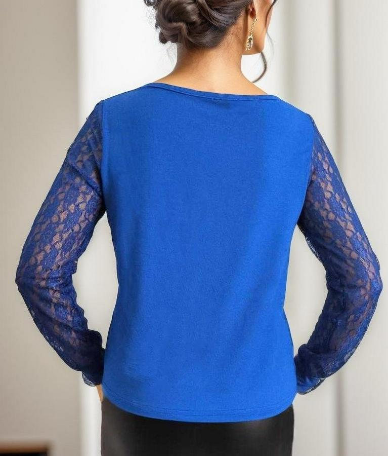 AnasayfaTüm ÜrünlerÜst GiyimBluz & TunikBluzUzun Kollu Yaka Ve Tül Detay Viskon Bluz