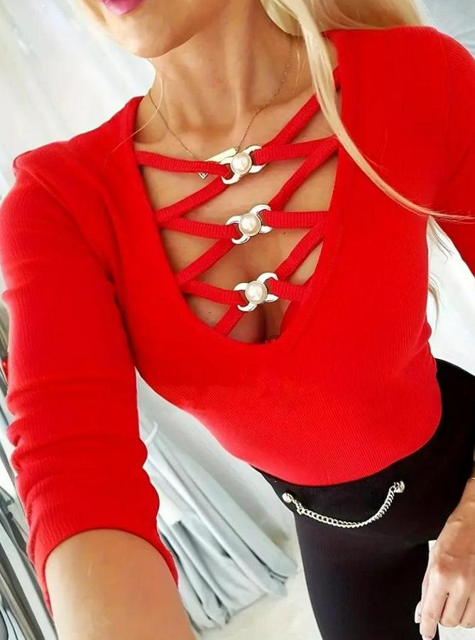 Uzun Kollu Yakadan Çapraz Detaylı Kaşkorse Bluz