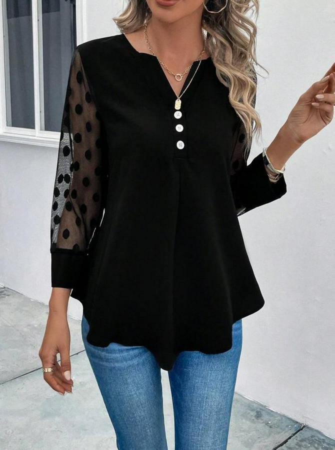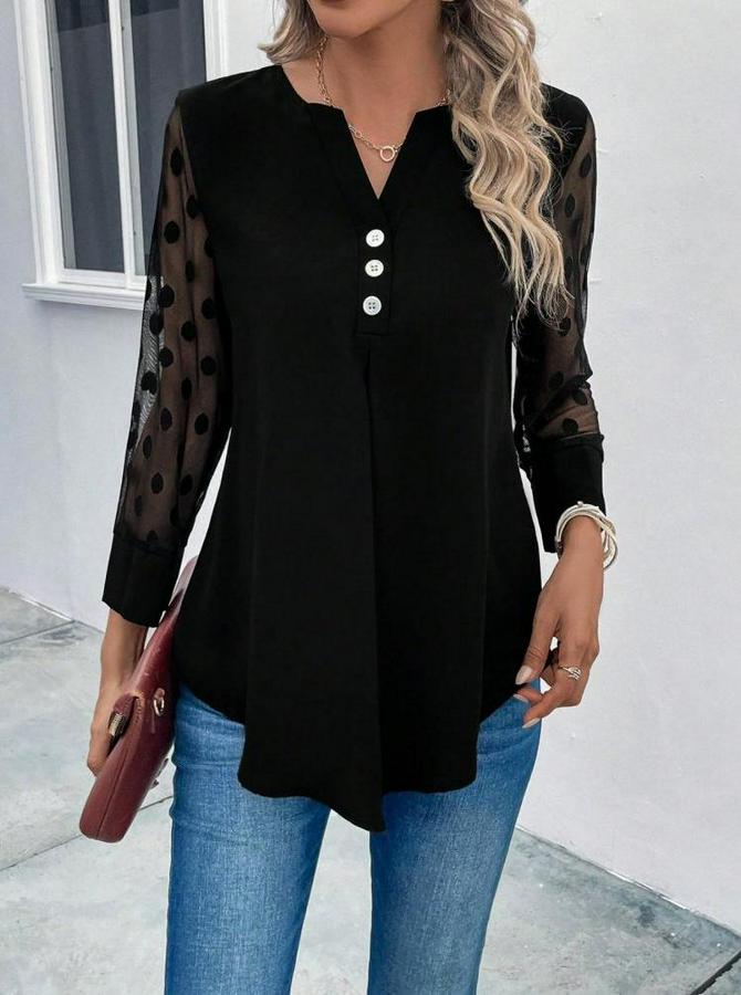 AnasayfaTüm ÜrünlerÜst GiyimBluz & TunikBluzUzun Kollu Yakadan Düğmeli Kolları Tül Detaylı Viskon Bluz