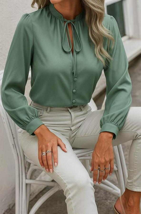 AnasayfaTüm ÜrünlerÜst GiyimBluz & TunikBluzUzun Kollu Yakalı Yakadan Bağcıklı Düğmeli Sandy Bluz