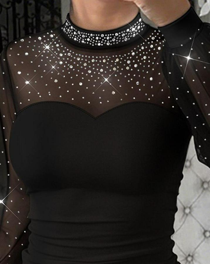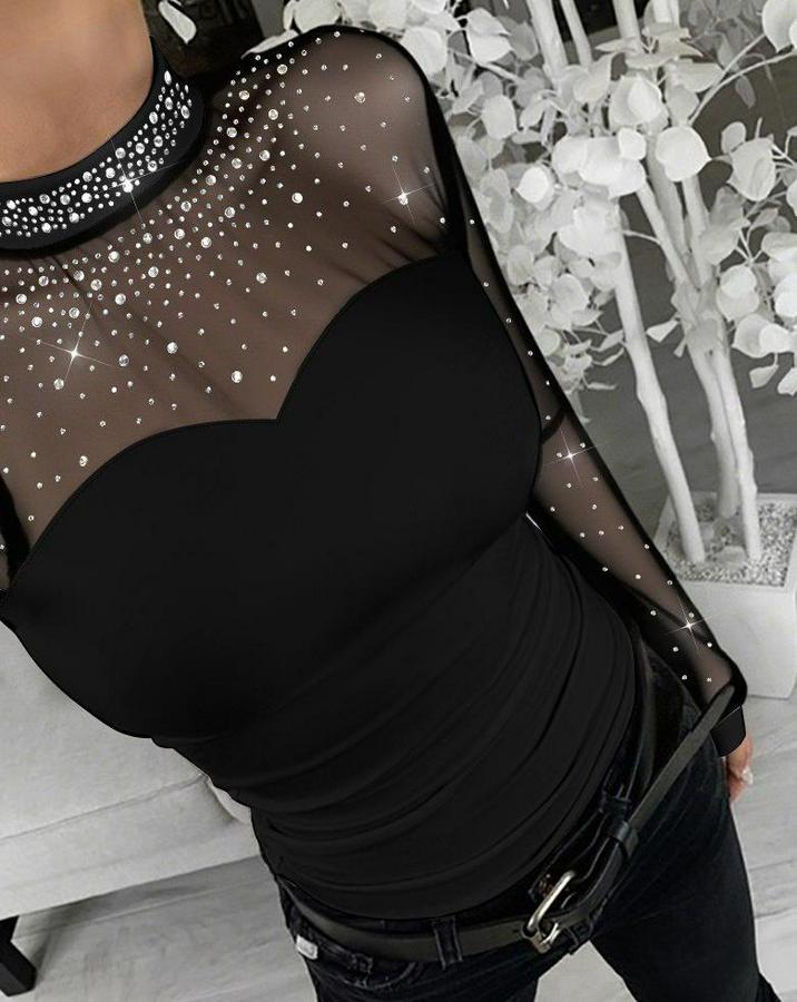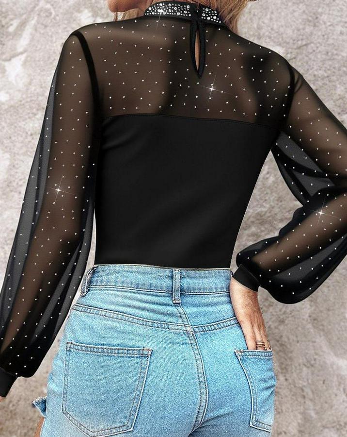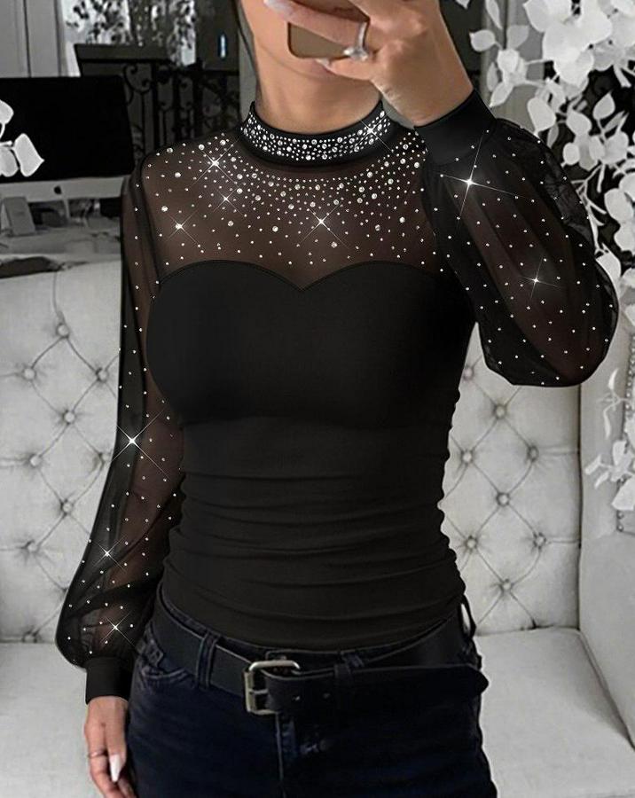 Kadın Uzun Kollu Yarı Balıkçı Yaka Taşlı Sandy Bluz