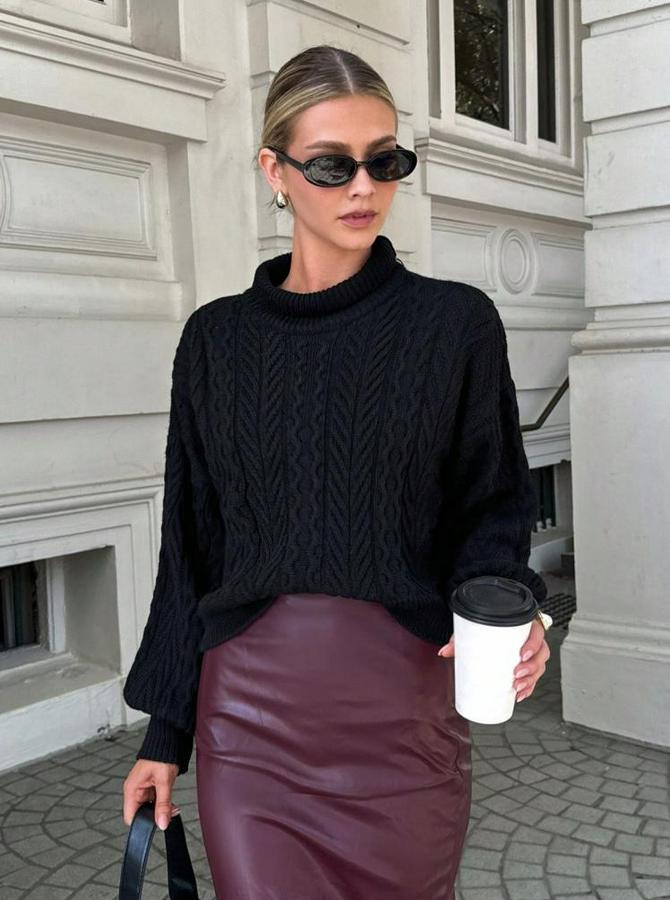 Uzun Kollu Yarı Balıkçı Yaka Triko Bluz