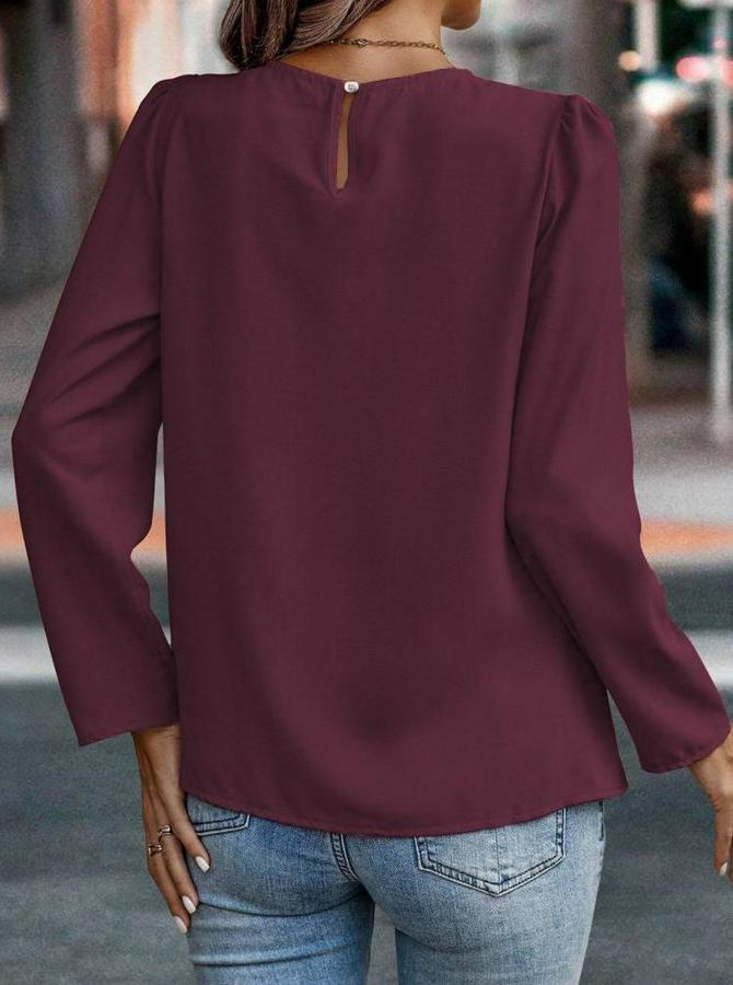 Kadın Uzun Kollu Yuvarlak önden Pileli Ithal Krep Bluz