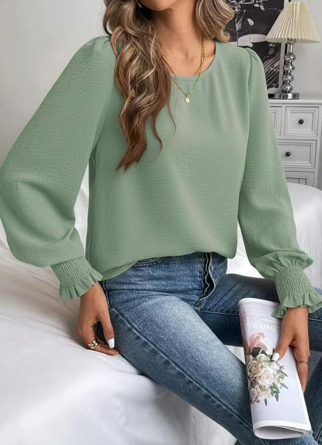 Uzun Kollu Yuvarlak Yaka Aerobin Bluz
