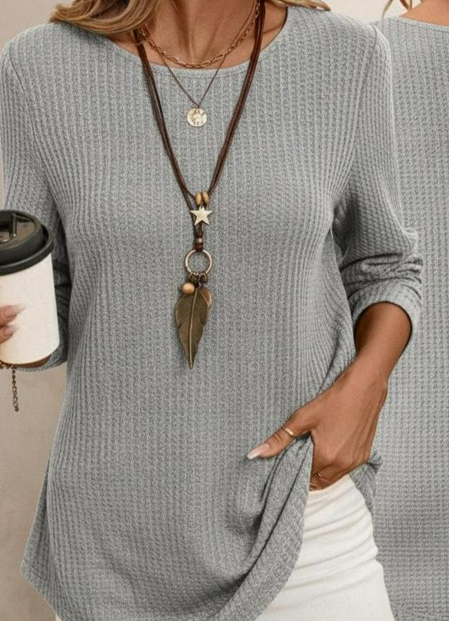 AnasayfaTüm ÜrünlerÜst GiyimBluz & TunikBluzUzun Kollu Yuvarlak Yaka Arkadan Düğmeli Waffle Bluz