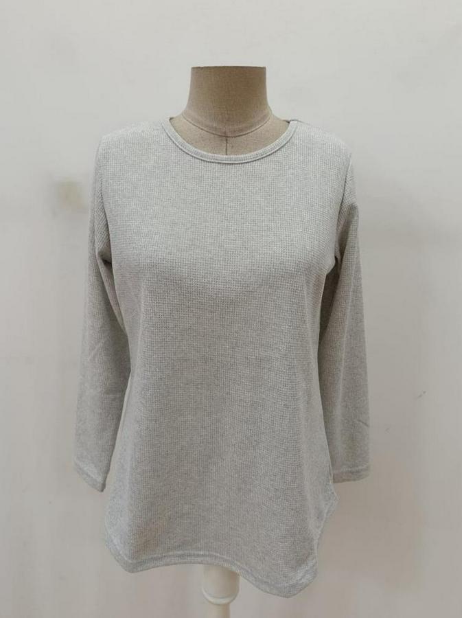 Kadın Uzun Kollu Yuvarlak Yaka Arkadan Düğmeli Waffle Bluz