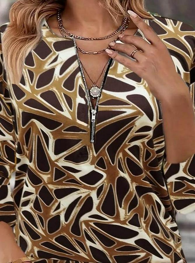 Kadın Uzun Kollu Yuvarlak Yaka Fermuarlı Desenli şardonlu Bluz