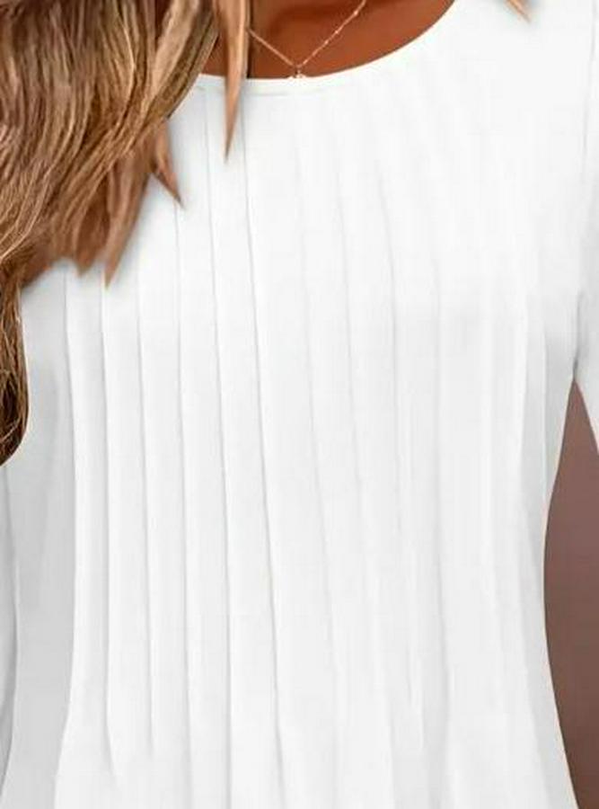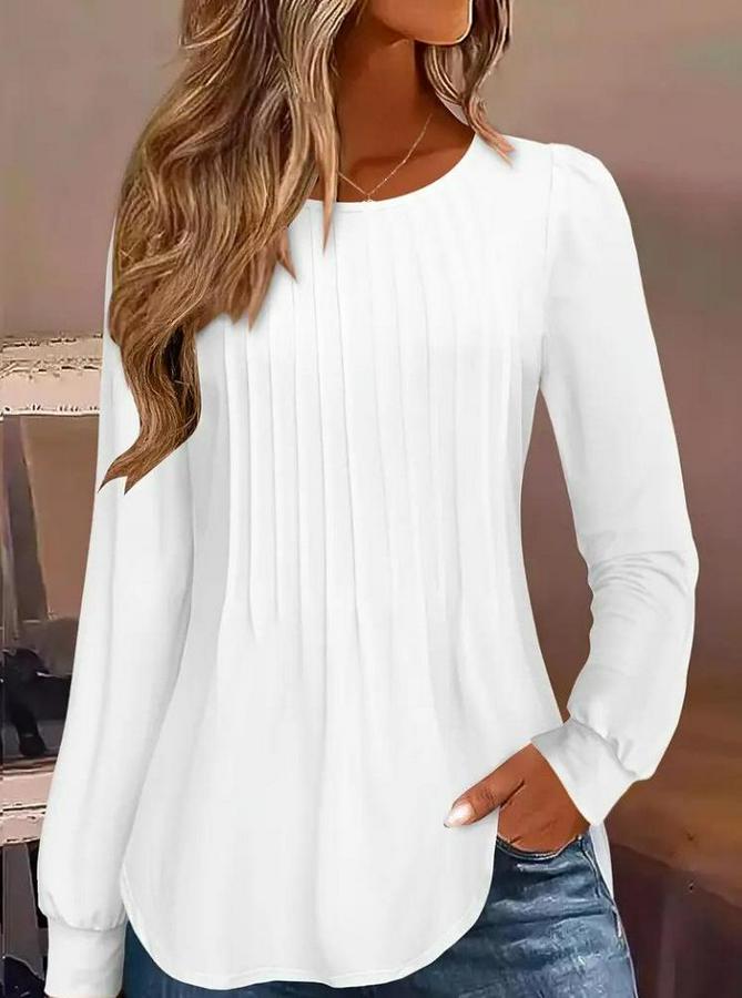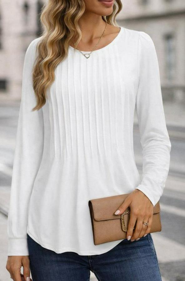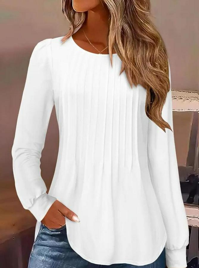 Uzun Kollu Yuvarlak Yaka Nervürlü Bluz