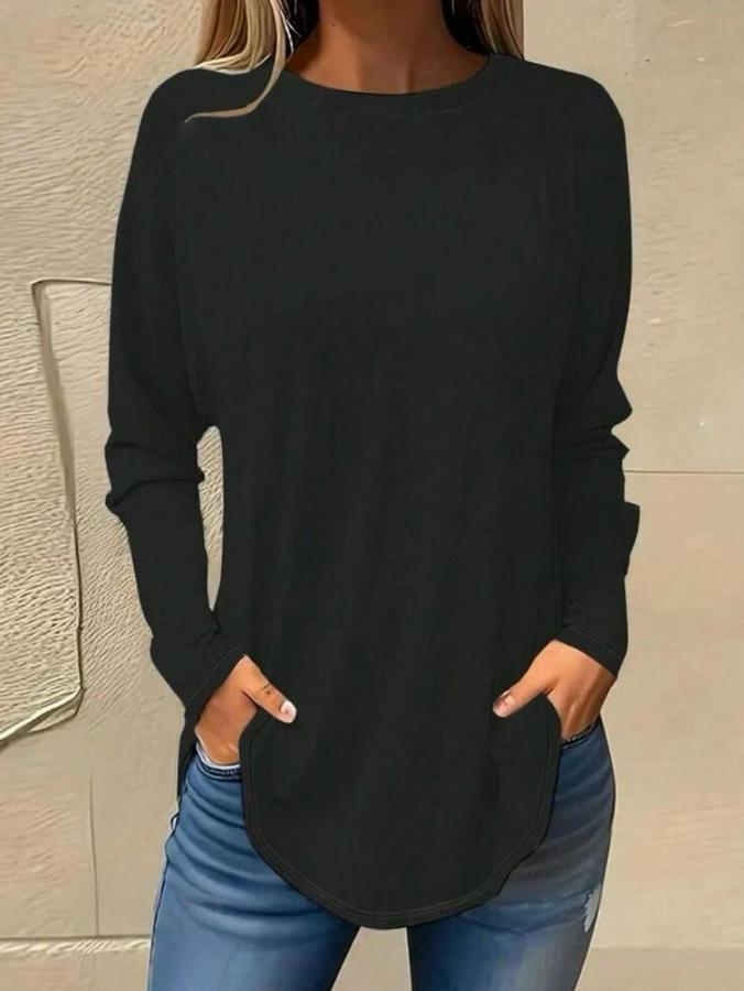 Kadın Uzun Kollu Yuvarlak Yaka Salaş Iki Iplik Bluz