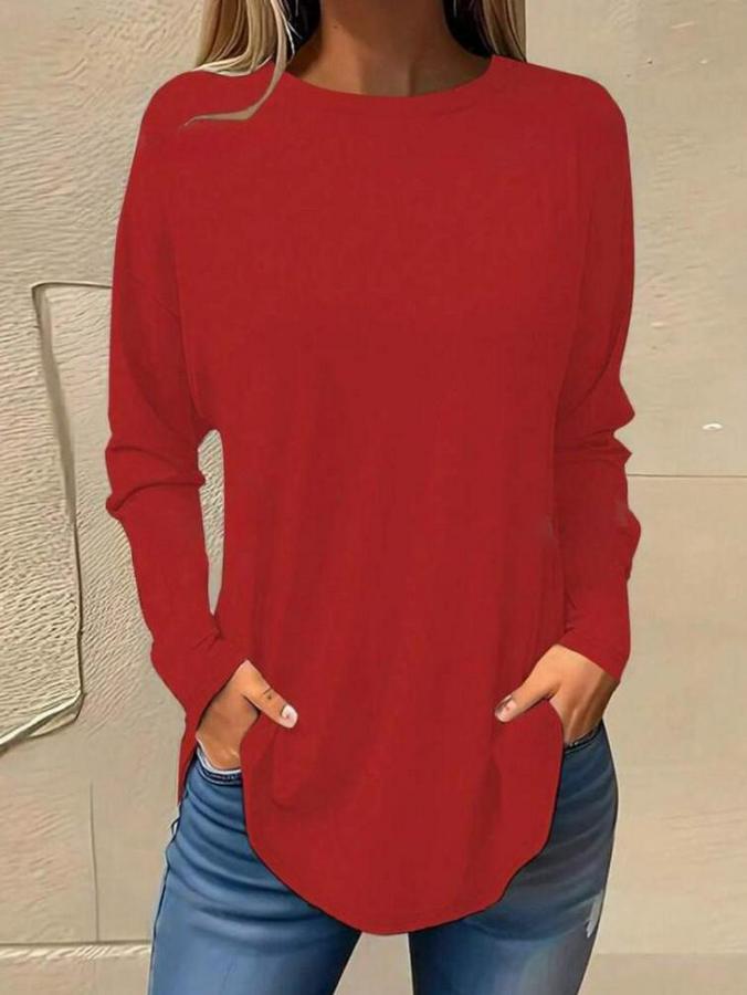 Kadın Uzun Kollu Yuvarlak Yaka Salaş Iki Iplik Bluz